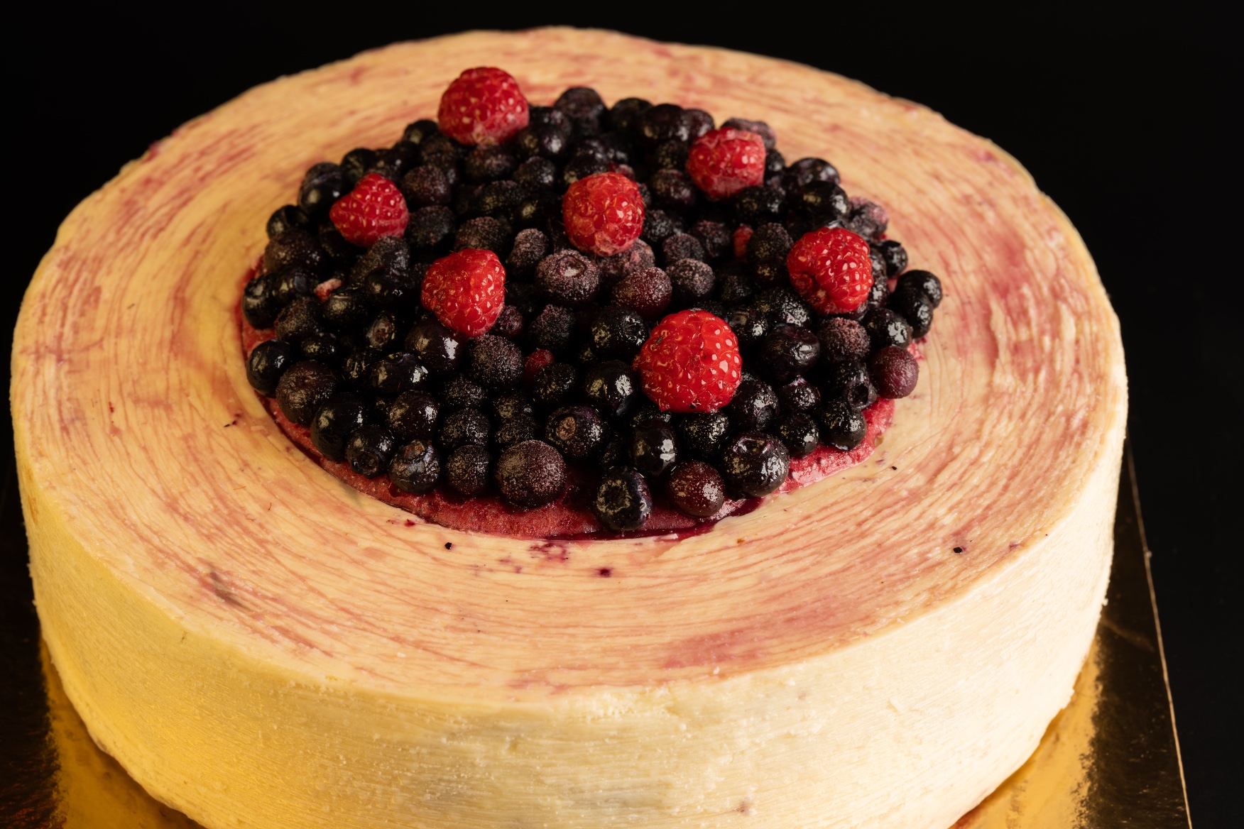 Il se compose d’une génoise aérienne et moelleuse, garnie d’une crème légère à la vanille et d’un mélange de framboises et de myrtille qui apportent une touche acidulée et fruitée. L’ensemble est parfaitement équilibré pour un dessert élégant et savoureux.