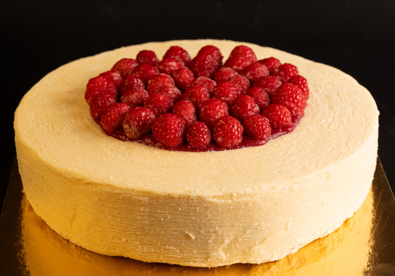 Il se compose d’une génoise aérienne et moelleuse, garnie d’une crème légère à la vanille et de framboises qui apportent une touche acidulée et fruitée. L’ensemble est parfaitement équilibré pour un dessert élégant et savoureux.