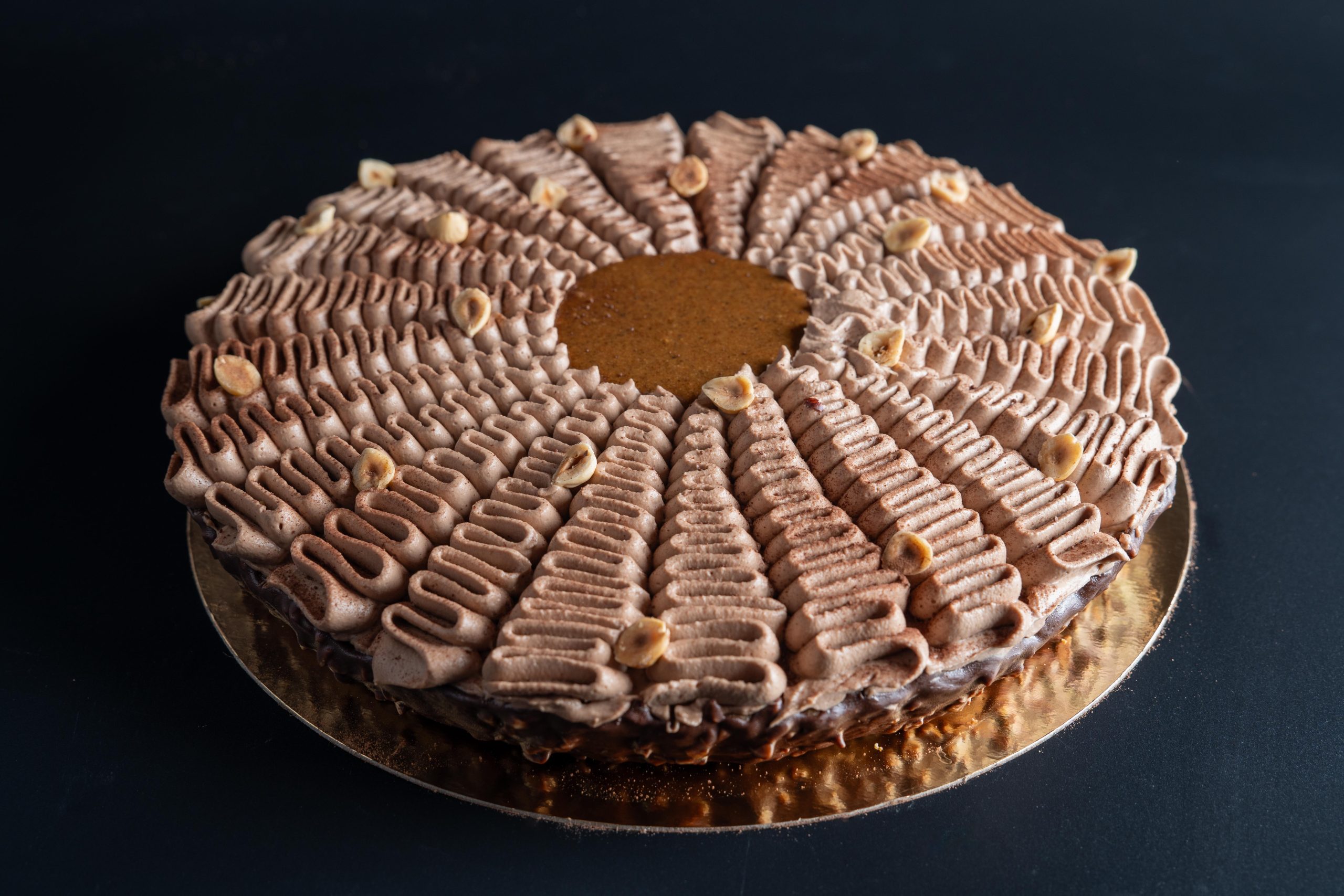 Sa pâte sablée, enrobée de chocolat et éclats de noisette, rencontre un croustillant praliné feuillantine et un mélange gourmand de biscuits noisette, praliné et noisettes concassées. Le tout sublimé par une ganache montée praliné noisette et ses noisettes torréfiées.