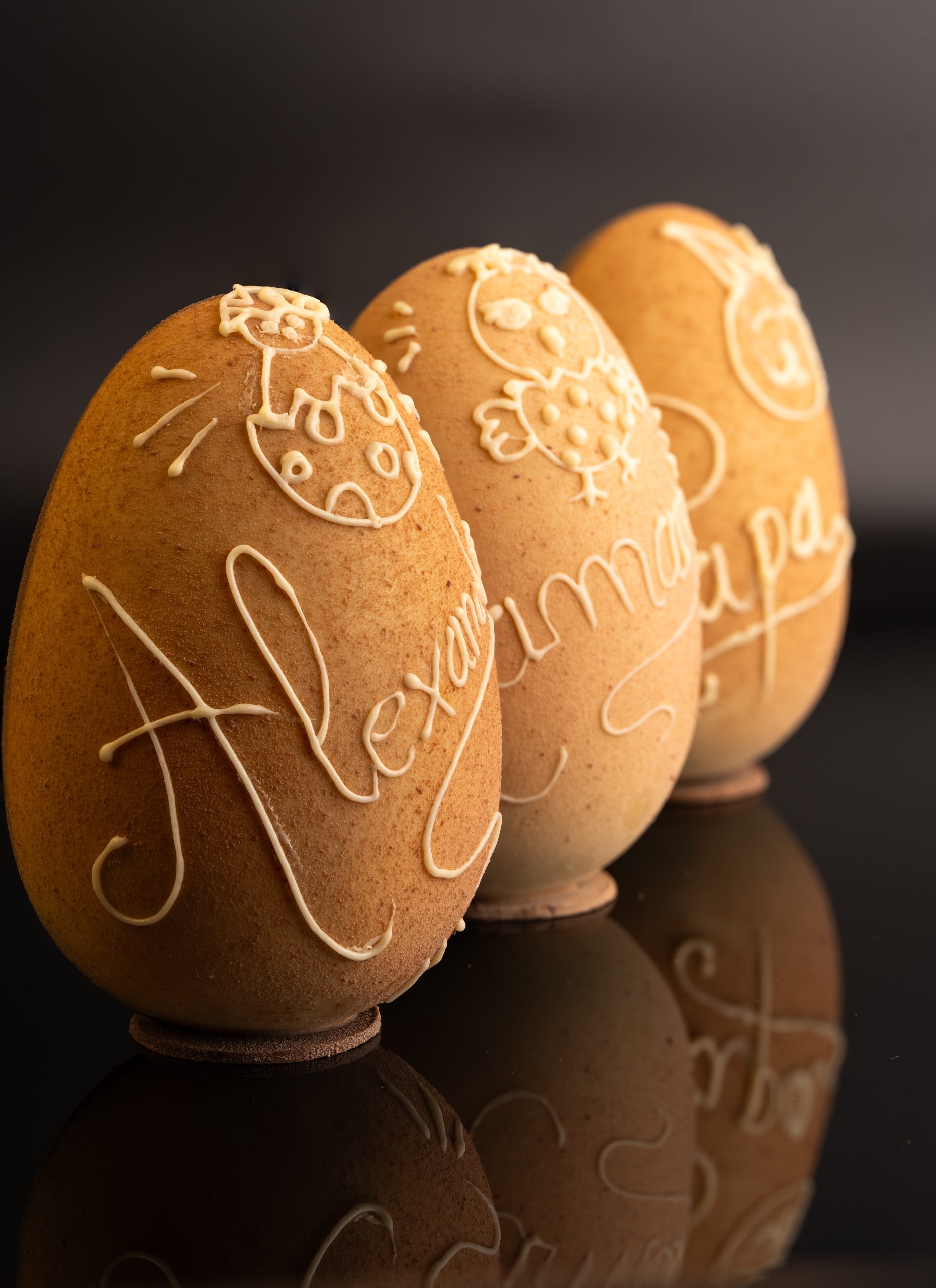 Œufs de Pâques artisanaux – 12 cm / 120 gAu choix : Blanc, Lait, ou Noir Garnis de friture
