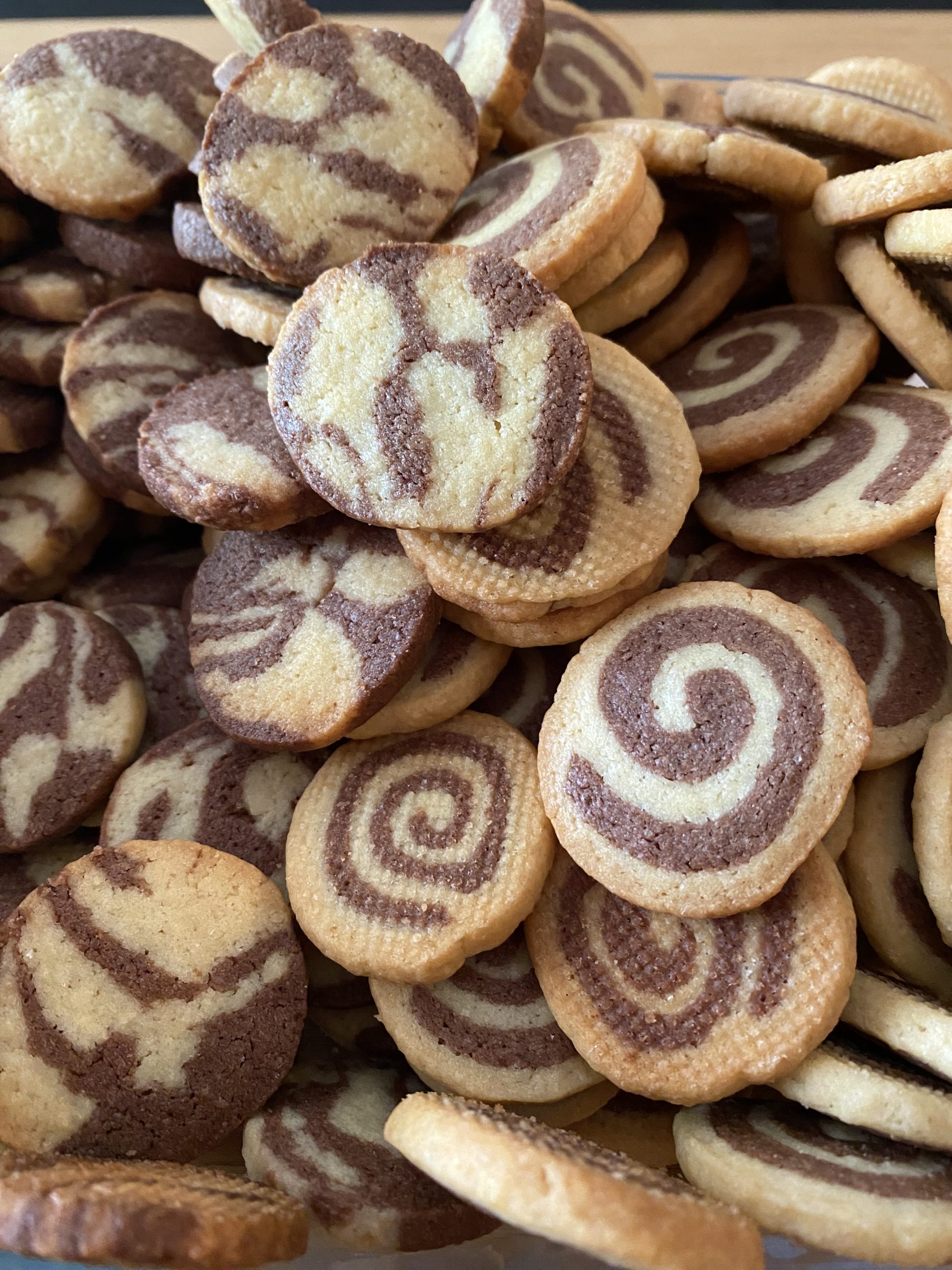 - Sablé marbré : alternance élégante de pâte nature et pâte cacao, façonnés à la main pour un effet visuel raffiné.